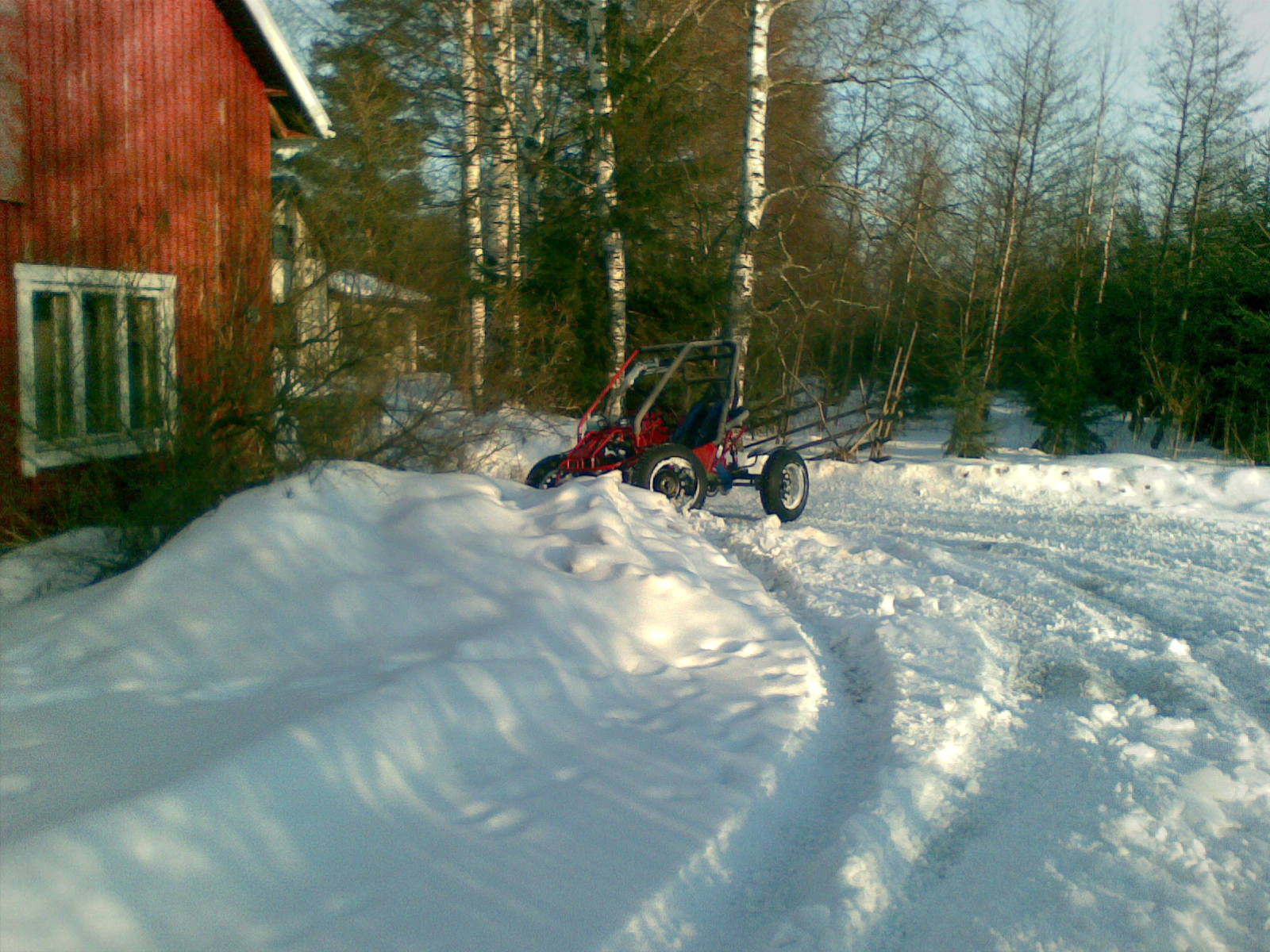 Välittömästi tuli huomattua laitteessa vakava puute, siinä ei ole pakkia. Pienikin spinnaus teettää töitä kun ensin avaa 6-pistevyöt että pääsee työntämään.. :) Ylisuuret renkaat eivät oikein auta tässä, kun eturenkaat ei enää mahdu kääntymään läheskään niin jyrkkään kulmaan kuin alunperin.