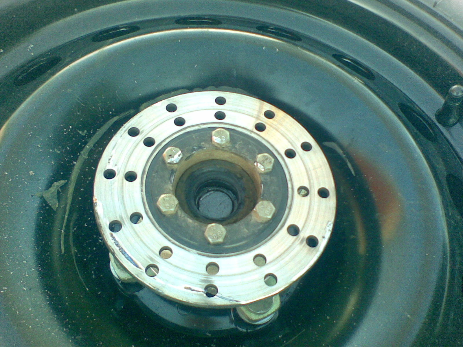Tarkempi analyysi paljasti että pyörän mukana oli irronnut myös koko pyörän napa jarrulevyineen päivineen. Laakeri oli leikannut kiinni. Kyllä on heikkoa tekoa nämä kiinalaiset, ei ole kuin moottoritehot 10-kertaistettu ja vanteet vaihdettu 3* painavampiin, ja heti alkaa paikat pettämään!