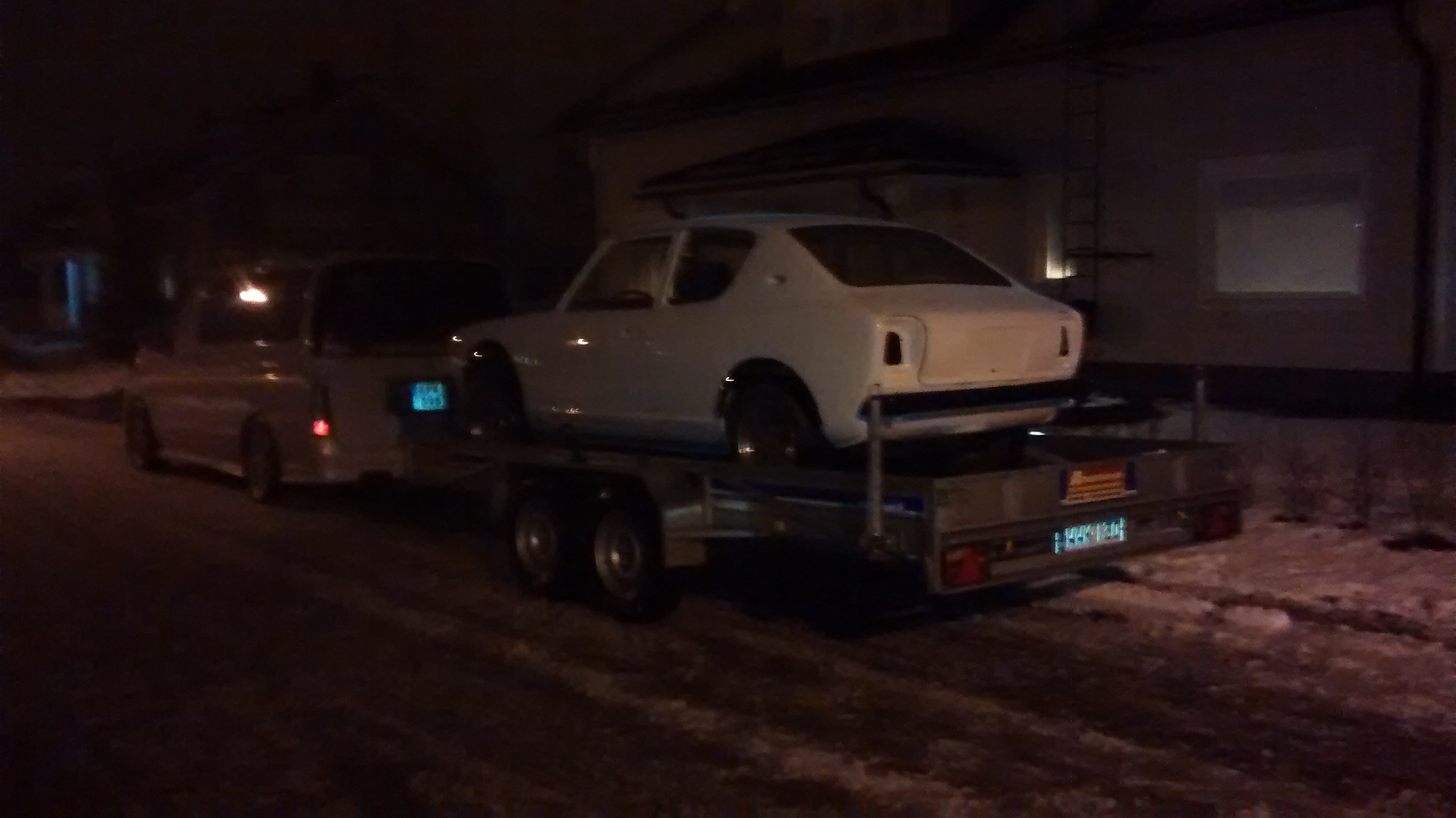 Tilanne oli sikälikin jännittävä että olin juuri saman päivän aamuna viimeistellyt Elgrandin vetokoukun asennuksen, ja uudella koukulla päästiin heti isoa autotraileria vetämään. :) Mutta hyvin onnistui.