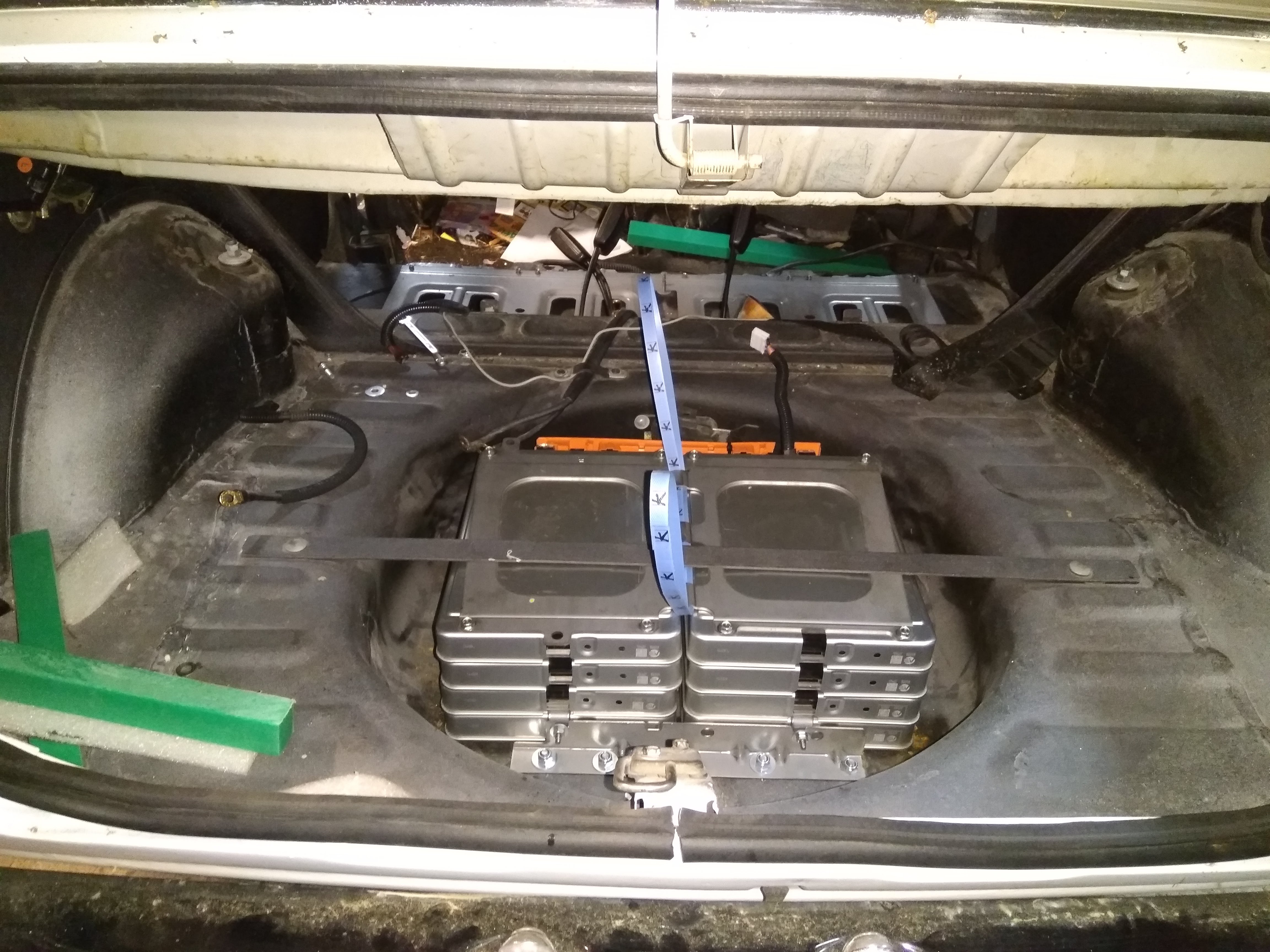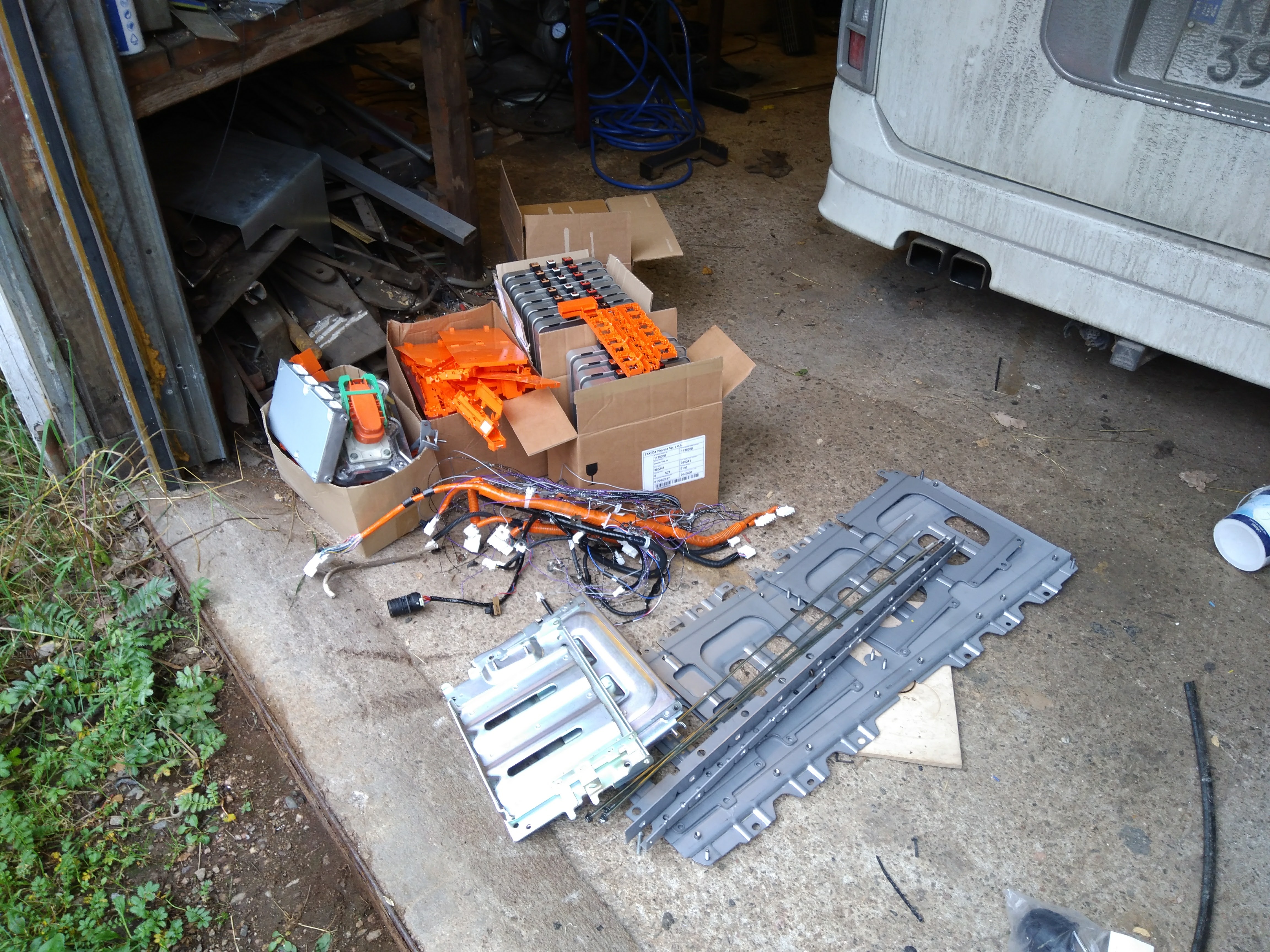 Akuston mukana tuli kaikki ylijääneet Leafin akuston osat, eli valtava läjä kiinnikkeitä, virtakiskoja, johtosarjoja ja muovisuojia johtojen ja akkunapojen päälle jne. Tämä helpotti projektia huomattavasti, verrattuna siihen että olisi pelkät kennot tilannut jostain nettikaupasta.
