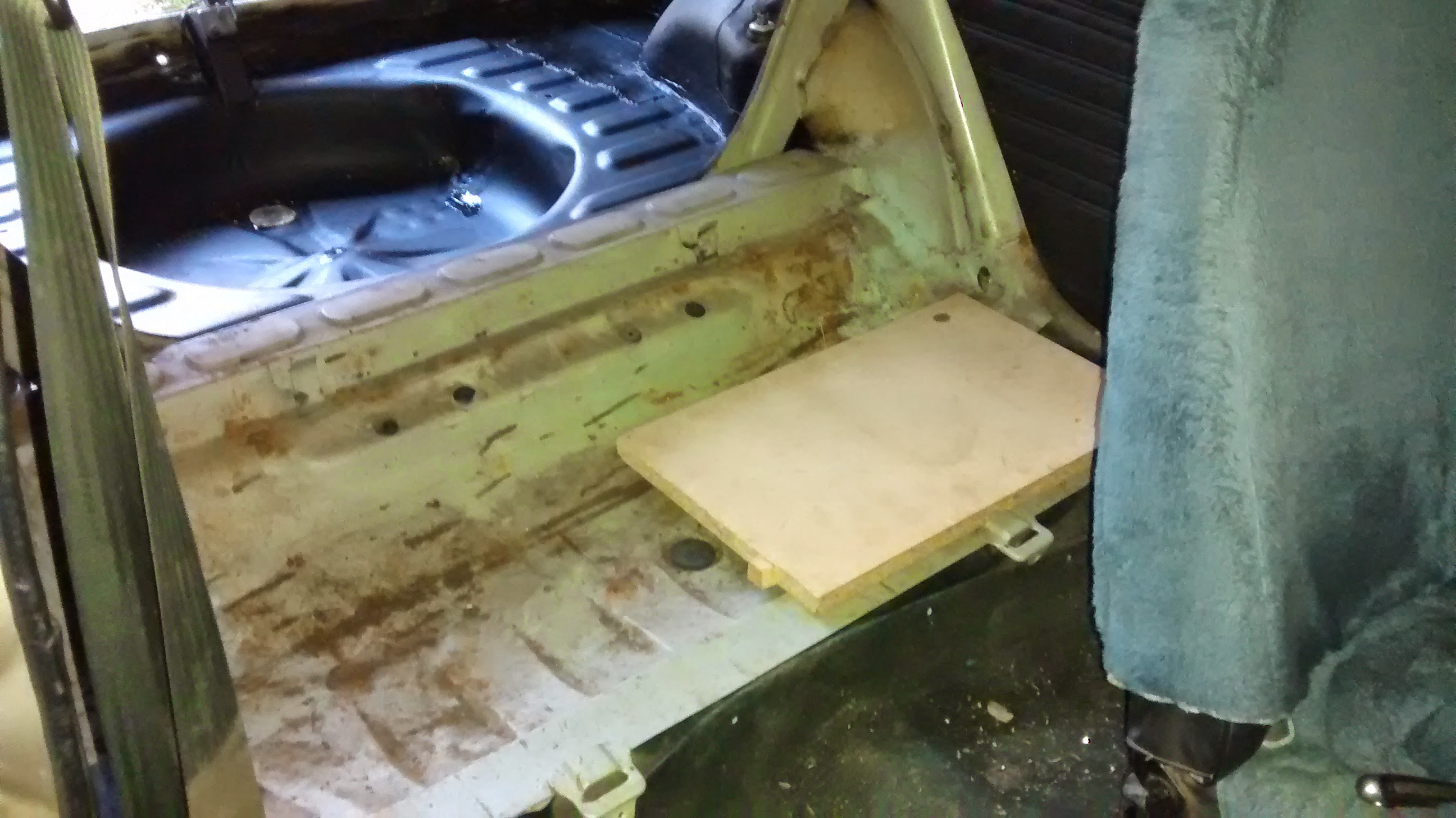Nettiauton halvin 100A maksoi 600 euroa ja löytyi Uudestakaupungista. Sitähän piti lähteä lähes samantien hakemaan. Auto vaikutti periaatteessa ihan lupaavalta, siinä oli korin maalausprojektia aloiteltu ja kaikki puretut osat oli pakattu autoon mukaan. Varsin epäsiistiissä vaiheessa toki tuommoinen puoliksi kittailtu kori.