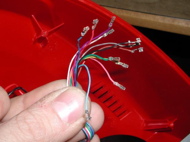 The wires that go to the big white connector are nearly all in wrong order. So, remove the pins from the connector, like this: