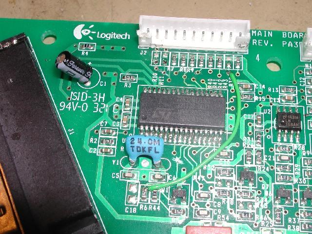 Picture above shows the GP Force chip soldered into the Momo PCB, and shows the required modifications on the top side of the PCB.