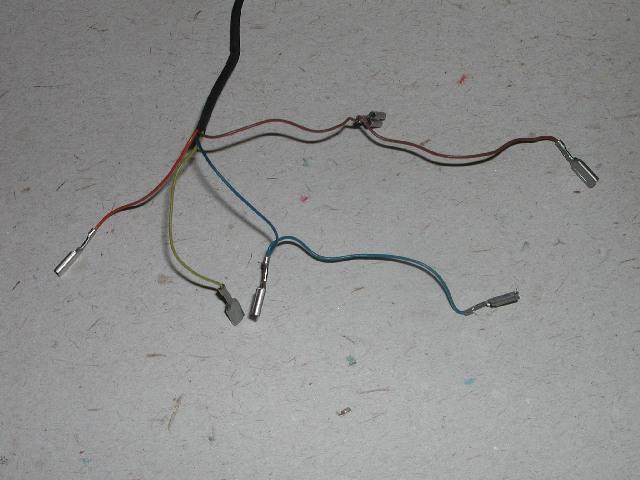 The image looks really weird again. :) The wire colors from top to bottom in above image are: orange, blue/brown, yellow, brown, blue/brown, blue.