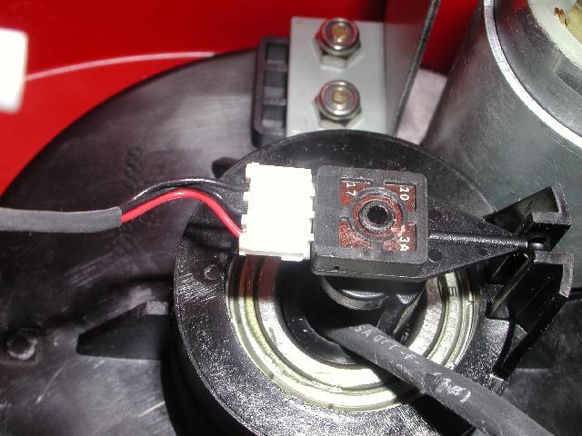 Also, the three pin cable going to the steering wheel potentiometer must be flipped, otherwise the steering will be reversed. :) This is quite simple when done on the potentiometer side, just remove and re-insert the connector like this: