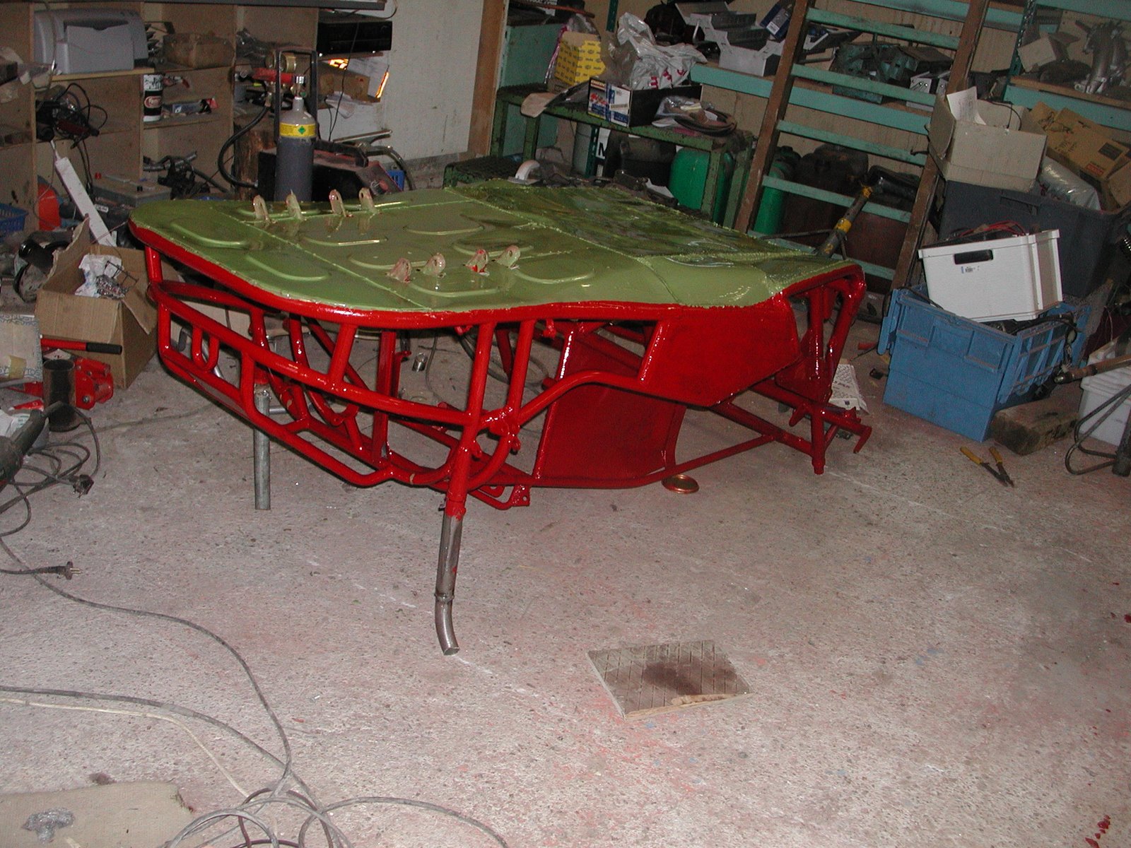 Luulin hetken että joudun tekemään tuohon pakoputken uusiksi, mutta alkuperäinen pakoputki sopikin täydellisesti paikalleen kun sen asensi ylösalaisin.. Melko tyylikäs. :D Alkuperäiset turvakaaretkin soviteltu takaisin paikoilleen. Etupään kiinnityspisteet on siirretty 30cm taaemmas, korin pidentämisestä johtuen..