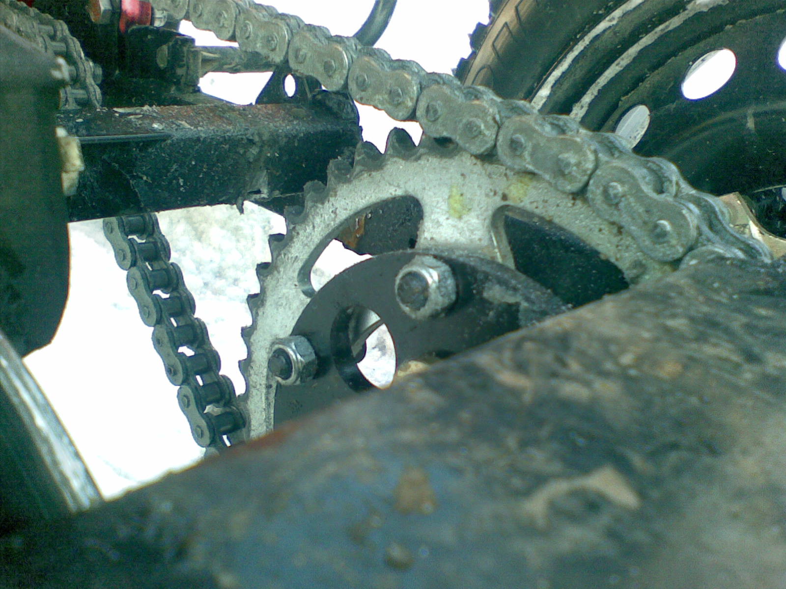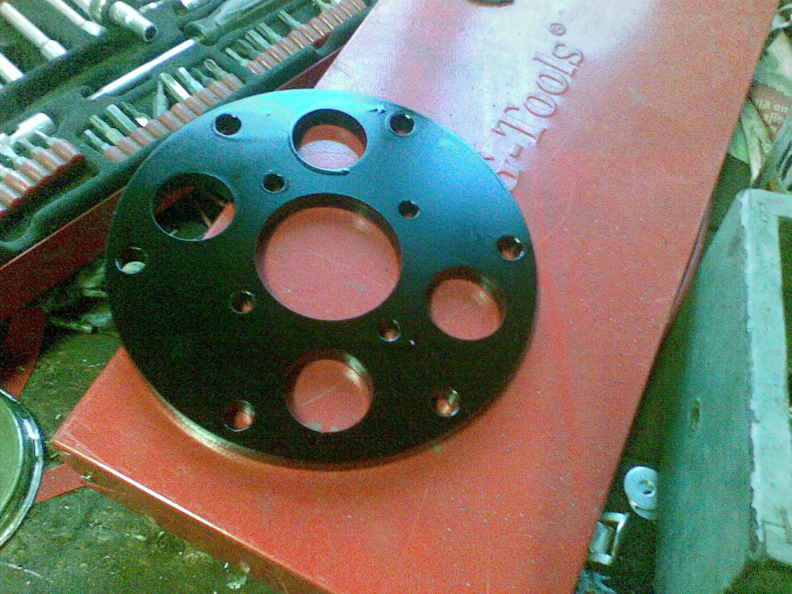 Teetin laserleikkauksessa laipan millä saadaan Yamahan takaratas sopimaan Fuden taka-akselille. Samalla se korjaa ketjulinjaa 10mm sivulle, jolloin ollaan aika lailla uuden moottorin kanssa linjassa.