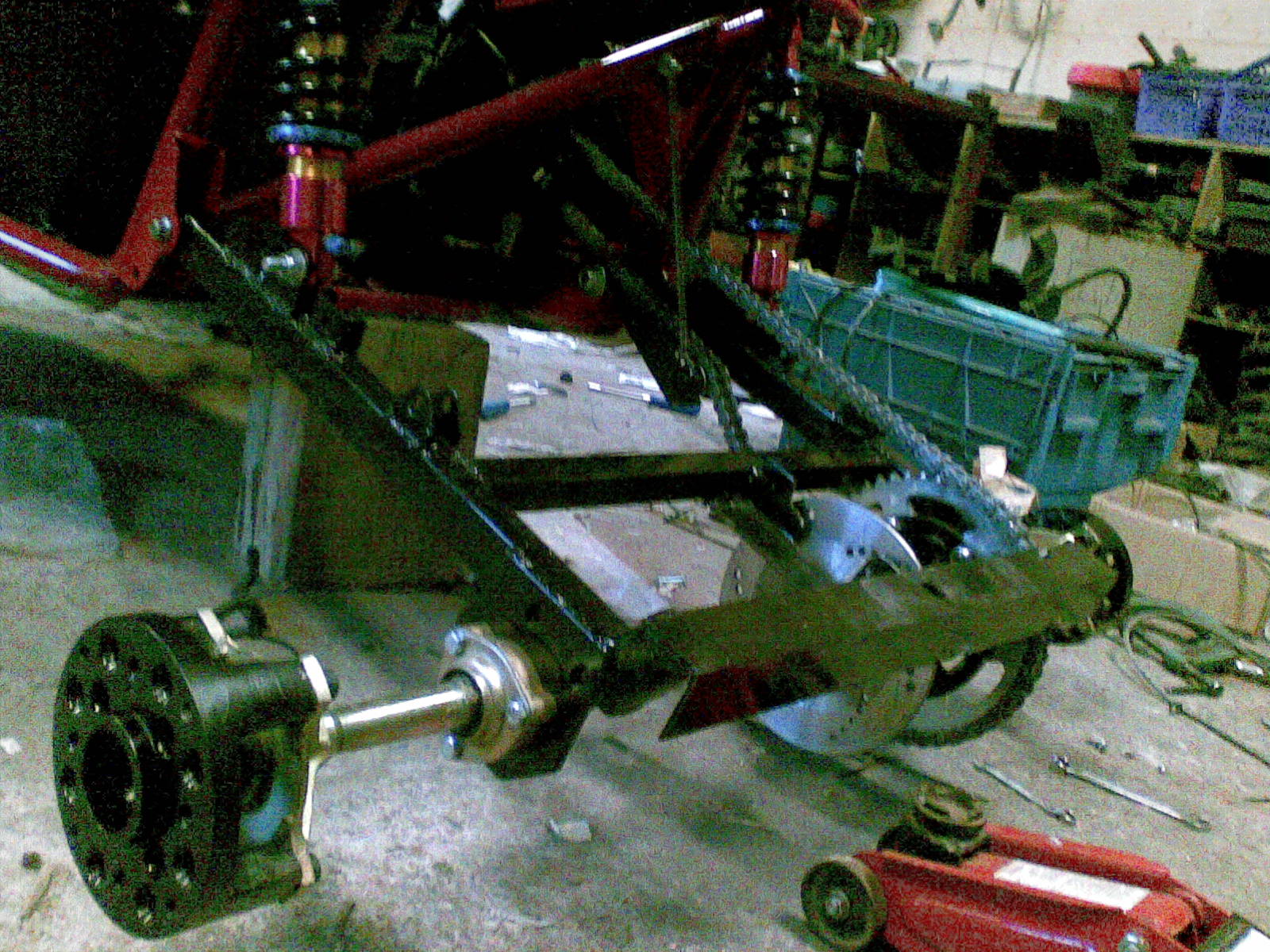 Takapää valmiina paikallaan. Ketjuille turasin jousivoimaisen kiristimen.