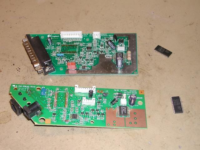 After a while, you should have the circuit boards of both wheels removed. Then you need to remove the ST72632 chips in both boards, like this: