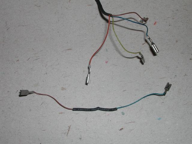 The image looks really weird again. :) The wire colors from top to bottom in above image are: orange, blue/brown, yellow, brown, blue/brown, blue.