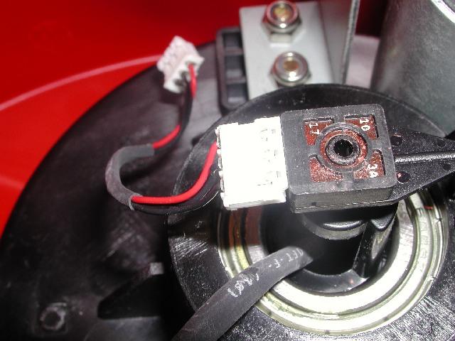 Also, the three pin cable going to the steering wheel potentiometer must be flipped, otherwise the steering will be reversed. :) This is quite simple when done on the potentiometer side, just remove and re-insert the connector like this: