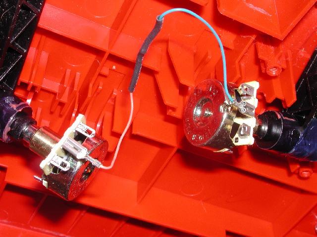 Also, the three pin cable going to the steering wheel potentiometer must be flipped, otherwise the steering will be reversed. :) This is quite simple when done on the potentiometer side, just remove and re-insert the connector like this: